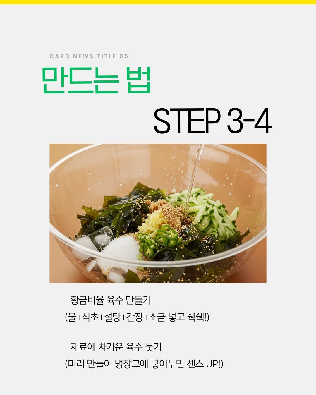 Here is a golden recipe for Miyeok Oi Naengguk that even a novice cook can't mess up! If you follow these steps, you'll enjoy a soup that's even more delicious than what you'd find in a restaurant.